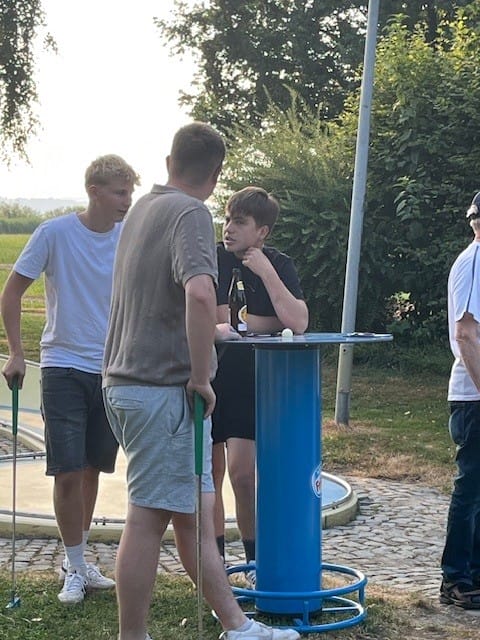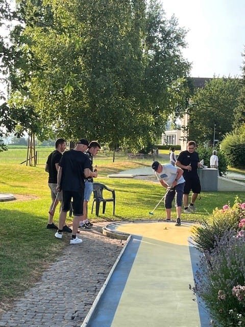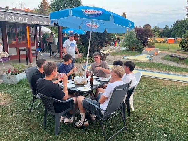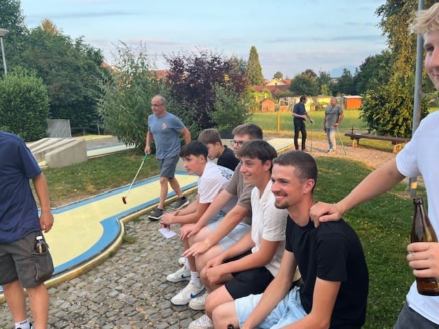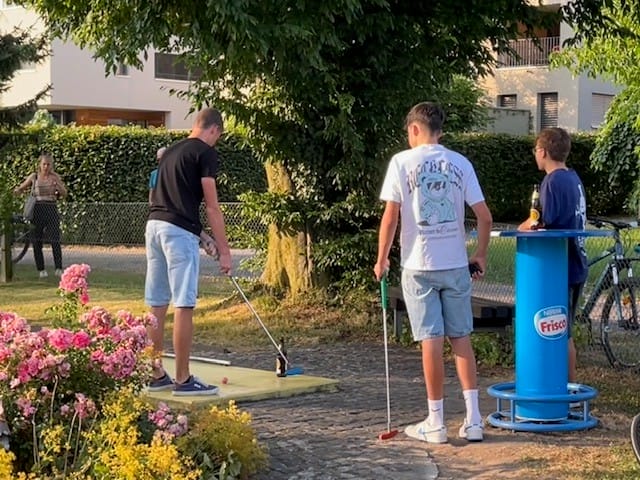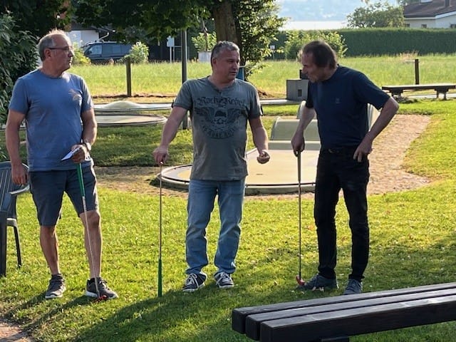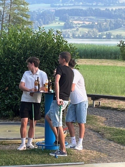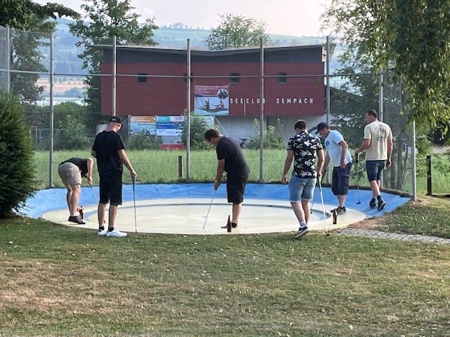 An einen Freitagnachmittag unternahmen wir einen gemütlichen Ausflug zum Minigolf nach Sempach. Nach einem gemeinsamen Apéro ging es los – gruppenweise spielten wir uns von Bahn zu Bahn. Dabei blieb es nicht nur bei sportlichem Ehrgeiz, sondern auch der Humor kam nicht zu kurz – der eine oder andere Ball musste unteren Büschen wiedergefunden werden.
