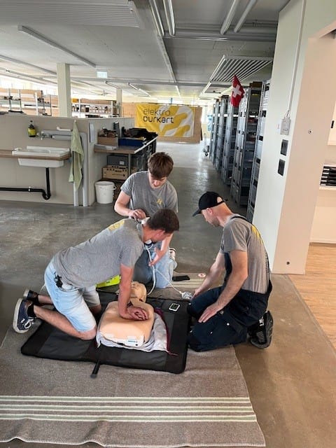 Dieses Jahr fand unser Team-Event in Form eines Erste-Hilfe-Kurses statt. Zwei erfahrene Samariterinnen führen uns durch die wichtigsten Massnahmen der Ersten Hilfe und sorgten dafür, dass unser Wissen auf den neusten Stand gebracht wurde. Besonders wertvoll war die Möglichkeit, den Defibrillator selbst in die Hand zu nehmen und den Umgang damit praktisch zu üben. So fühlen wir uns wieder sicherer und gut vorberietet für den Ernstfall.